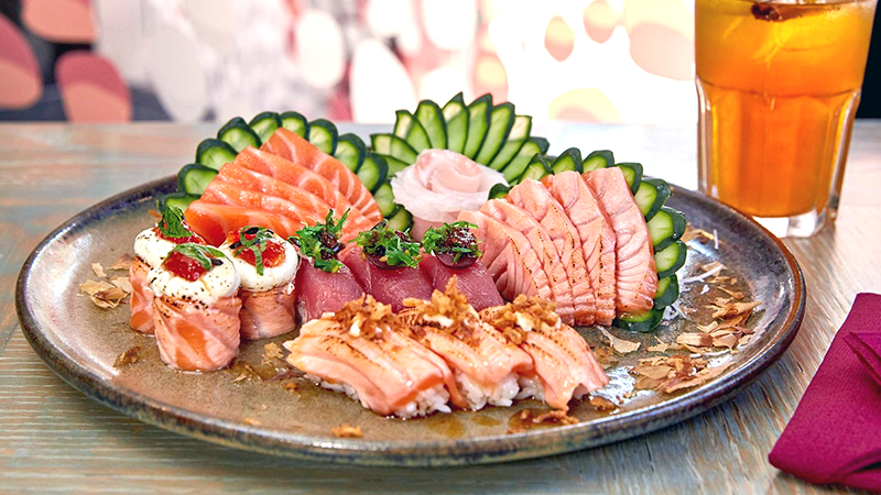 Este menu inclui: Sushi, Sashimi, Saladas, Tempura, Pratos Quentes, Pratos de Fusão